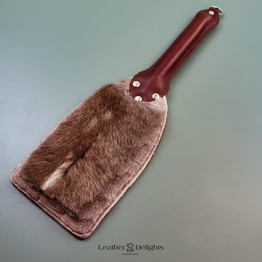 Brown Suede and Brown Leather Flogger with Silver Handle