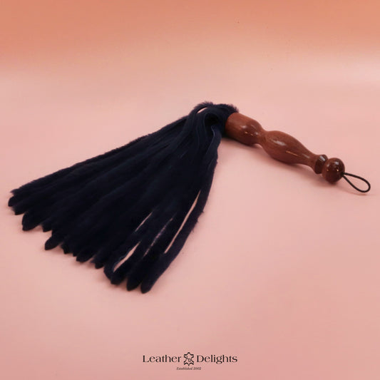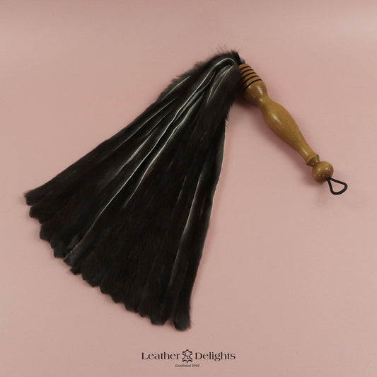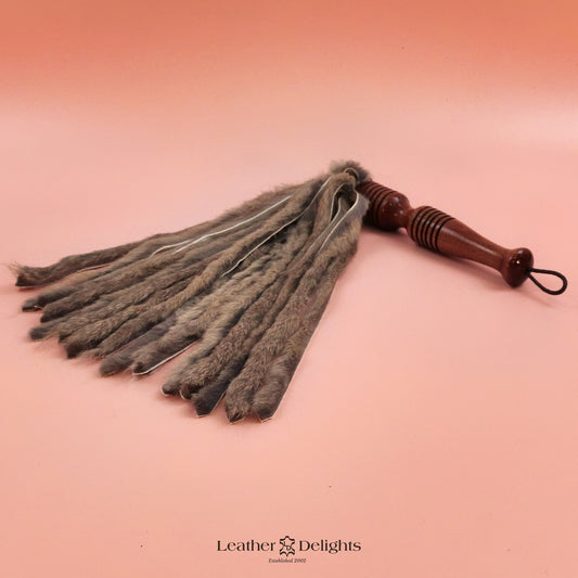 Peitsche aus natürlichem Kaninchenfell mit orangefarbenem Griff