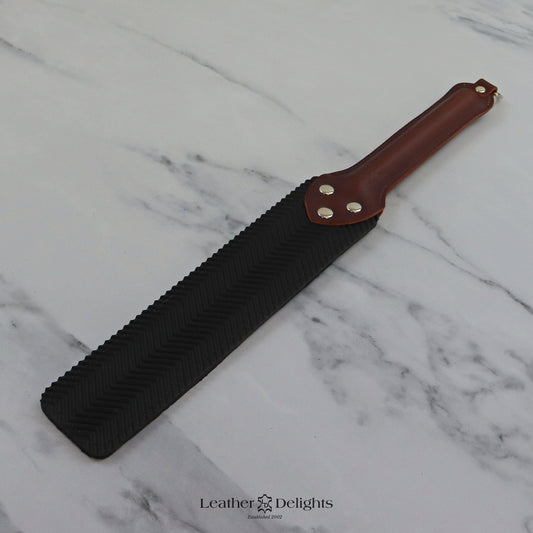 Punishment Paddle - Blue Robot Leather & Red Tyre Tread Rubber