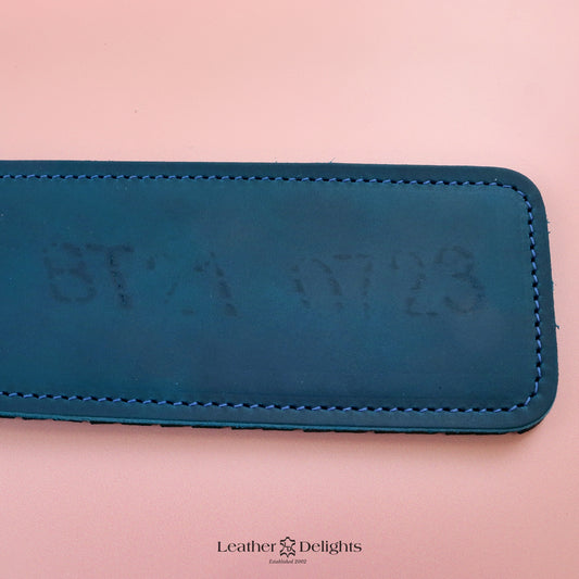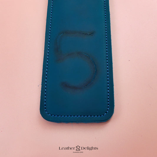 Punishment Paddle - Branded Turquoise Pull Up Leather & Blue Ripple Rubber