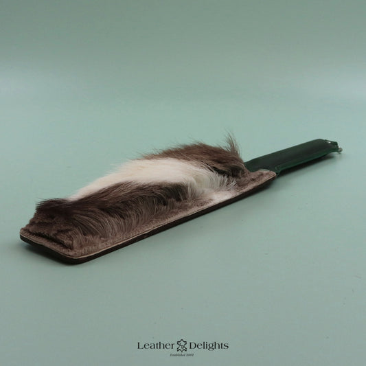 Punishment Paddle - Brown Leather & Hair on Hide Reindeer with a Green Handle