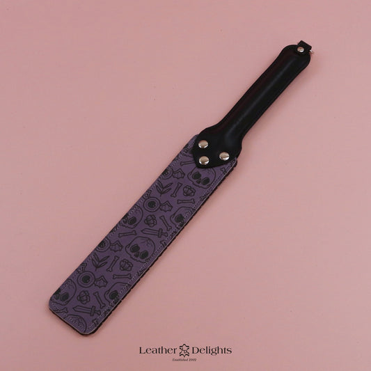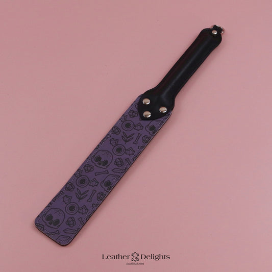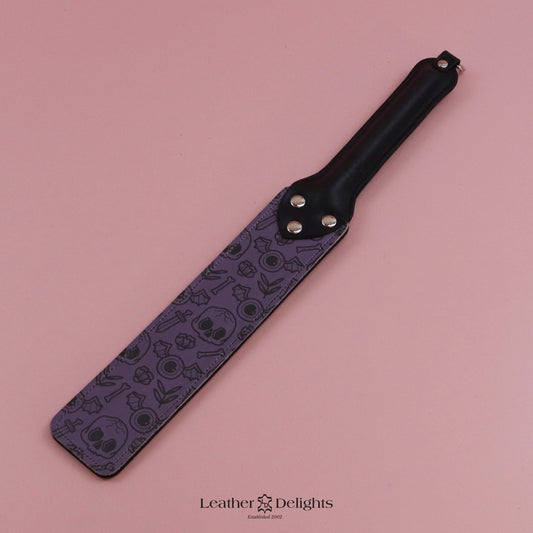 Punishment Paddle - Bones Leather & Black Dimpled Rubber with Purple Handle