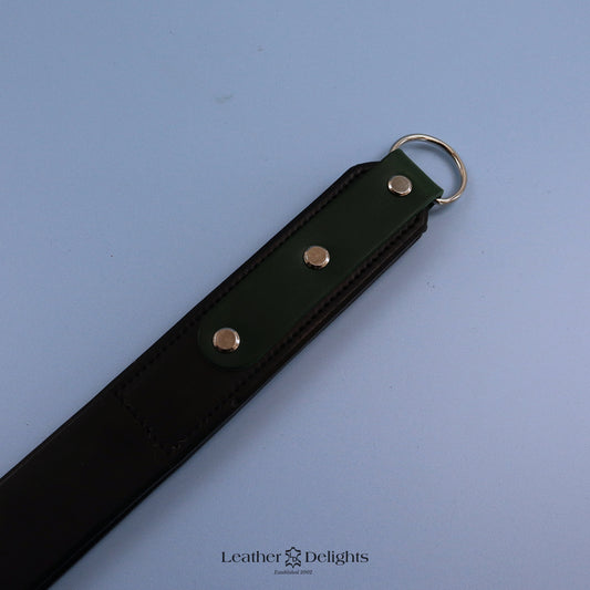 Belt Strap - Oak Bark Tanned Leather with Green Hanging Loop and Green Stitching