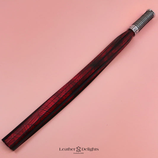 Grüne und schwarze Lederpeitsche mit silbernem Griff