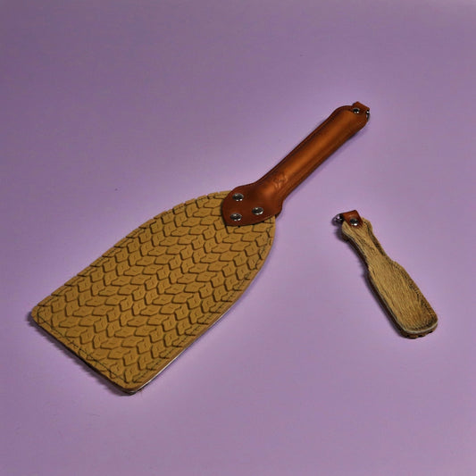 Booty Beater - Animal Print Sheepskin & Brown Buffalo Leather