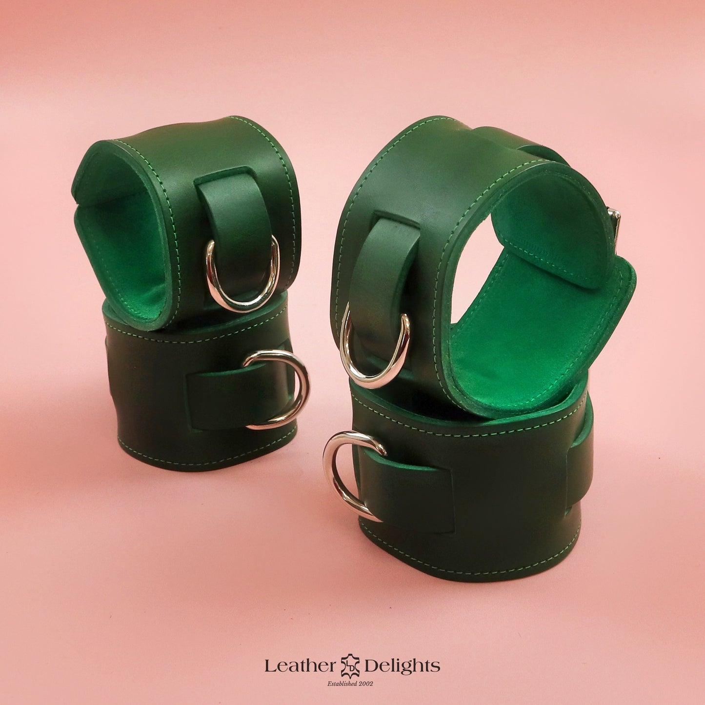 Each set - whether for wrists, ankles, or biceps - includes a single D ring for straightforward attachment. Our thigh cuffs, designed for more complex restraint setups, are equipped with three D rings, offering additional versatility and control. Crafted for both the beginner and the seasoned enthusiast, these cuffs are an essential component of any BDSM collection. Elevate your bondage experience with our Heavy Bondage Cuffs, where enduring strength meets comfort and security.