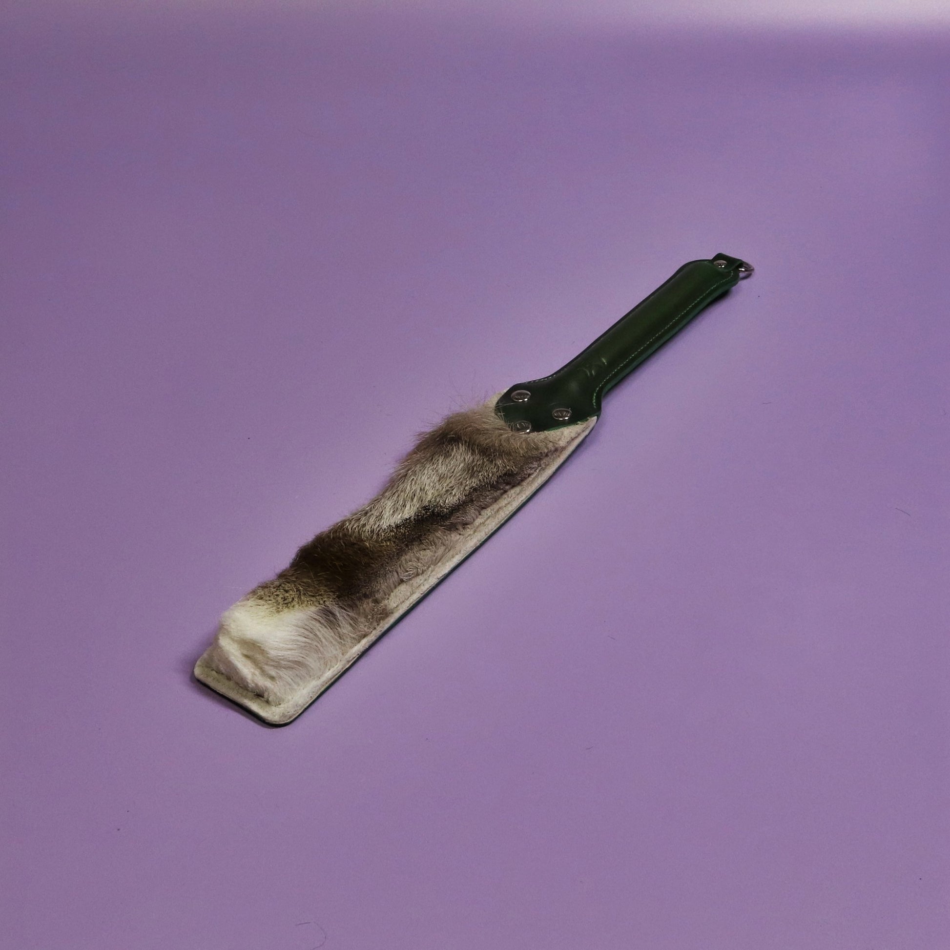 Punishment Paddle - Green Italian Leather & Hair on Hide Reindeer