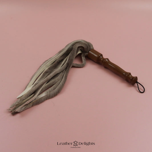Heavy Bondage Cuffs - Leopard Print Sheepskin & Brown Leather