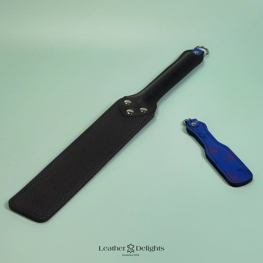 Punishment Paddle - Blue Robot Leather & Black Dimpled Rubber