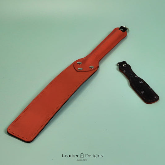 Punishment Paddle - Paw Print Suede & Orange Leather