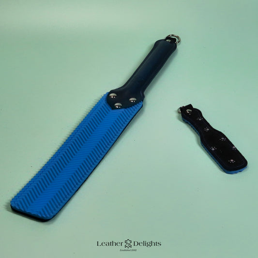 Punishment Paddle - Paw Print Suede & Blue Ripple Rubber with Blue Handle