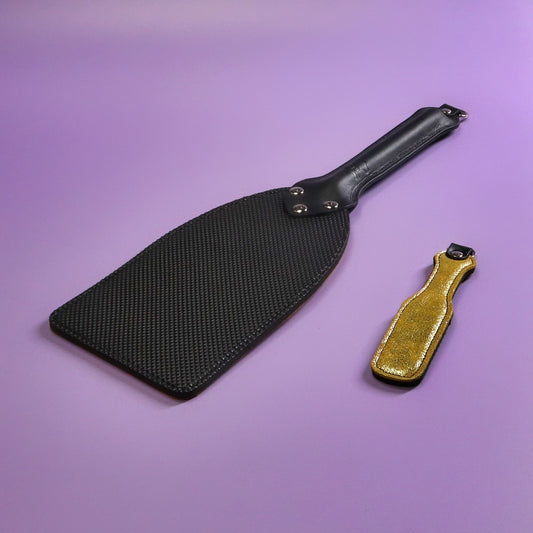 Punishment Paddle - Paw Print Suede & Black Ripple Rubber