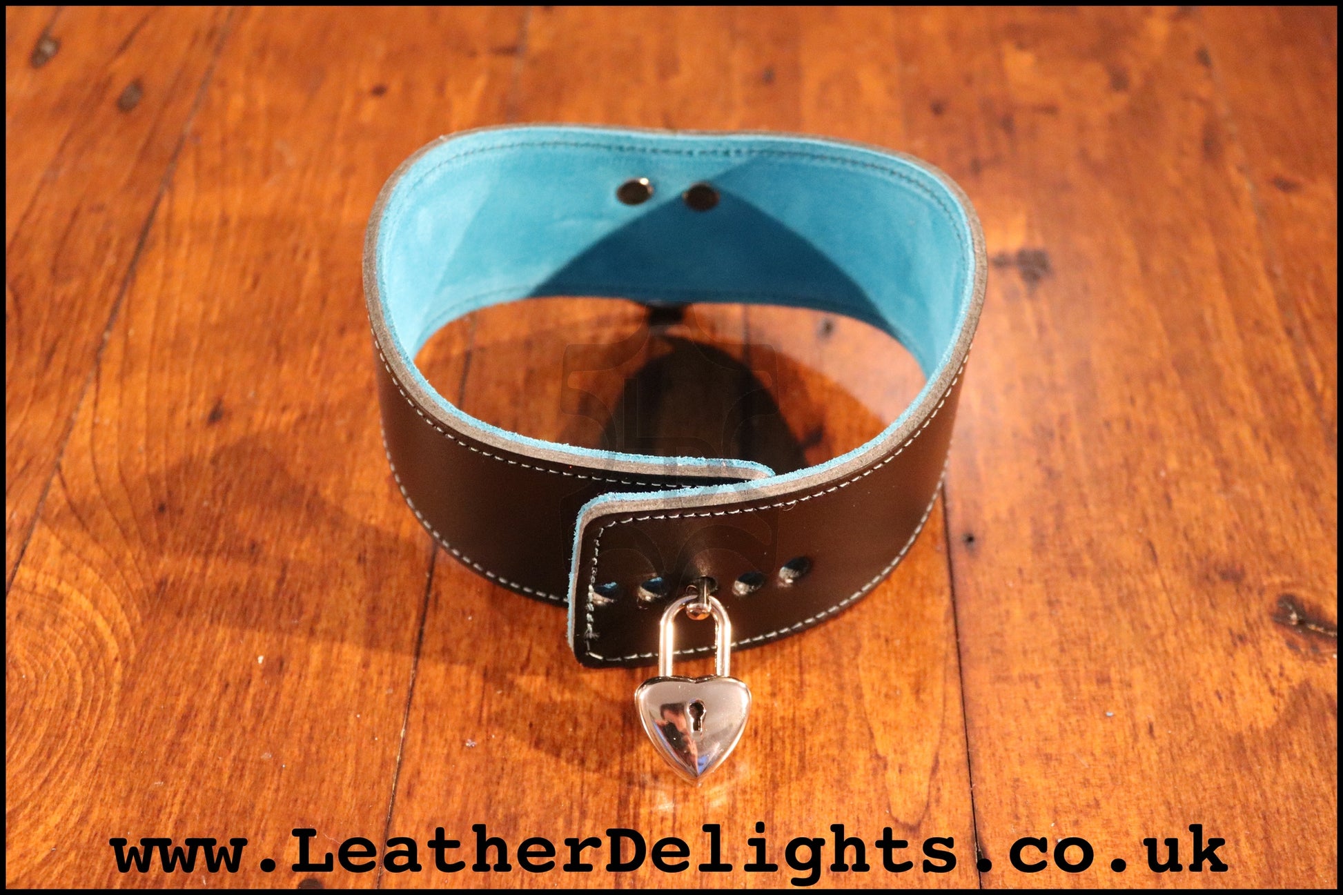 Collier contour noir de 2 po de large avec anneau en D soudé et doublure en daim