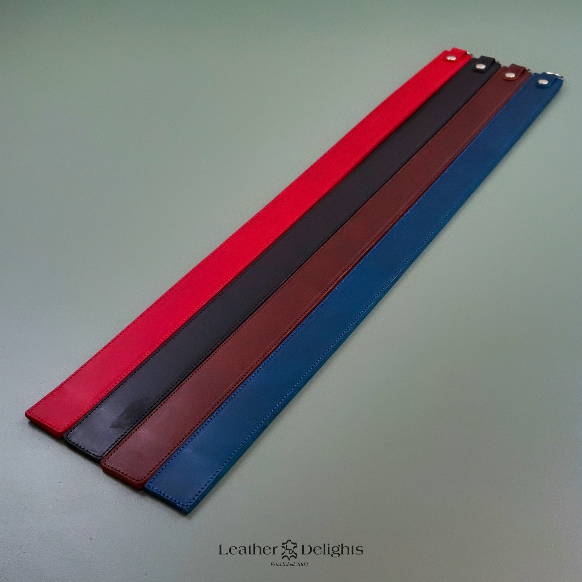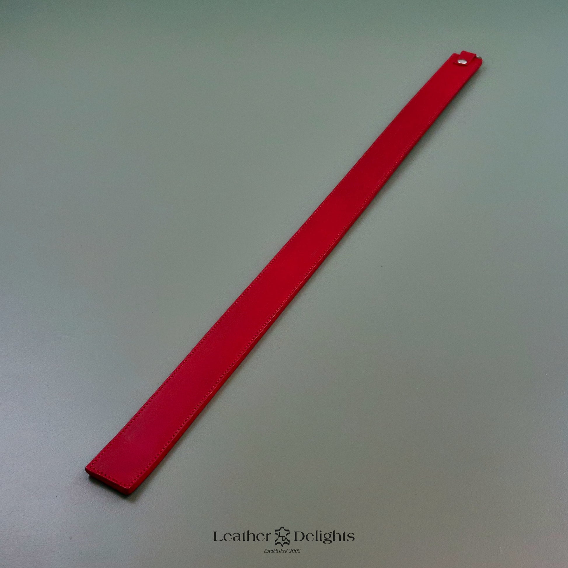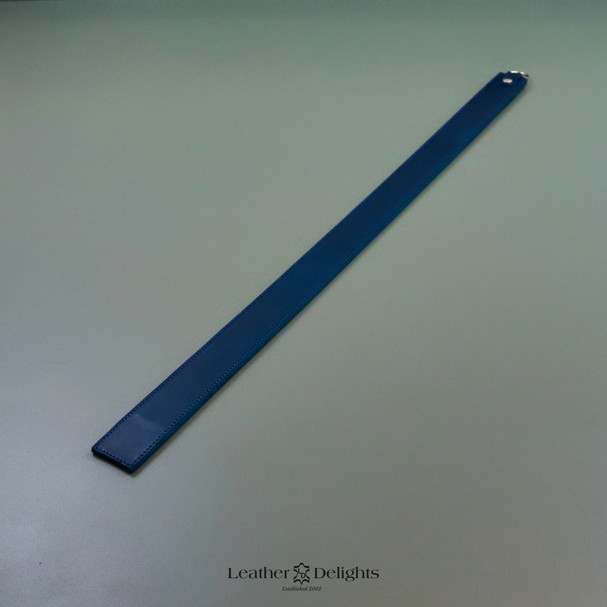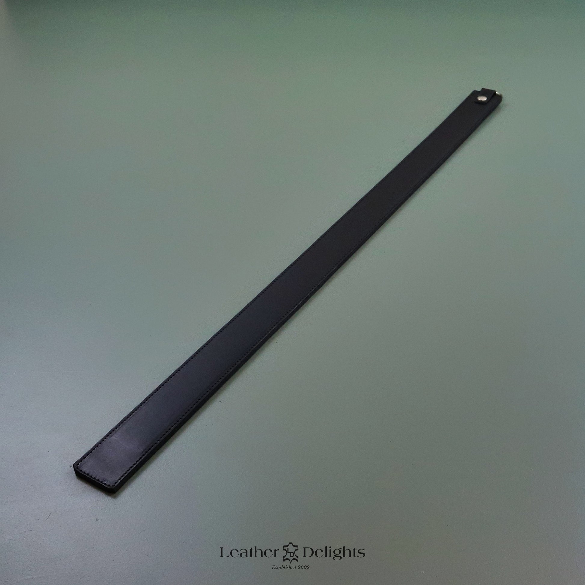 Introducing the Extended Enforcer strap, the formidable big brother to our Enforcer. At 1 1/2" wide, 26" long, and 1/4" thick, this strap isn't just longer; it's a beast with a bite. Crafted from our premium 6-7oz Walpier Buttero vegetable-tanned leather and reinforced with a sprung steel core, it delivers a powerful impact with a satisfying whip. Perfect for those who crave intensity in their play, but remember, its over 2ft length means you'll need ample space to wield it.