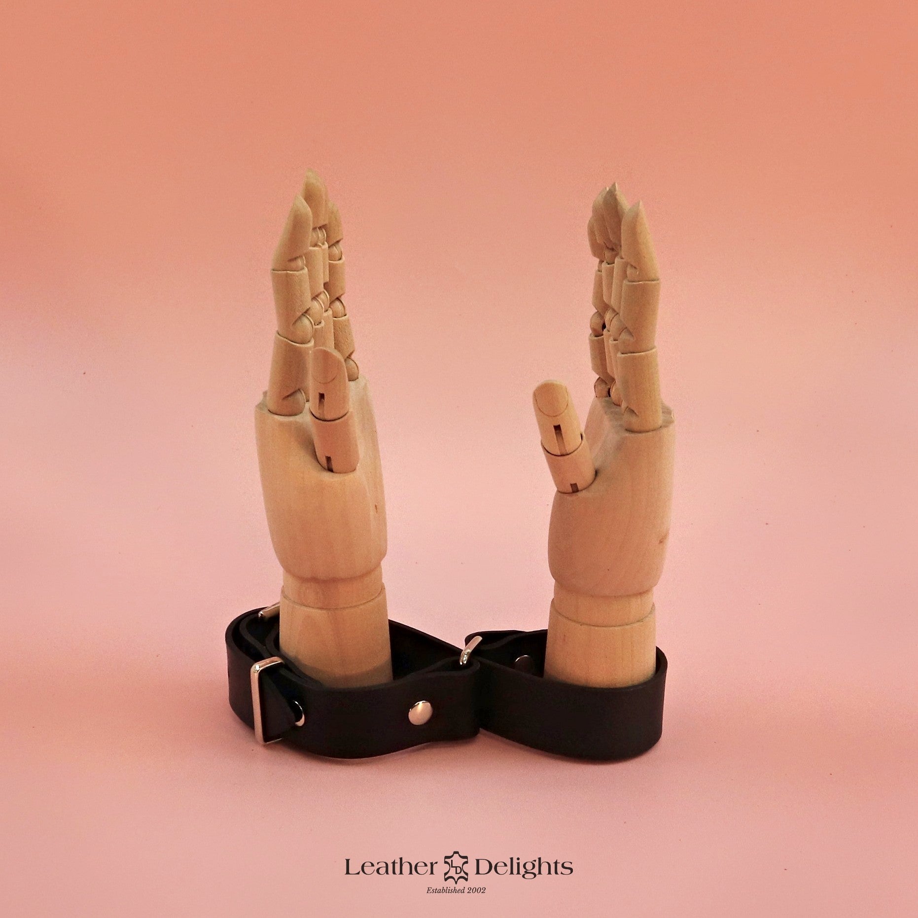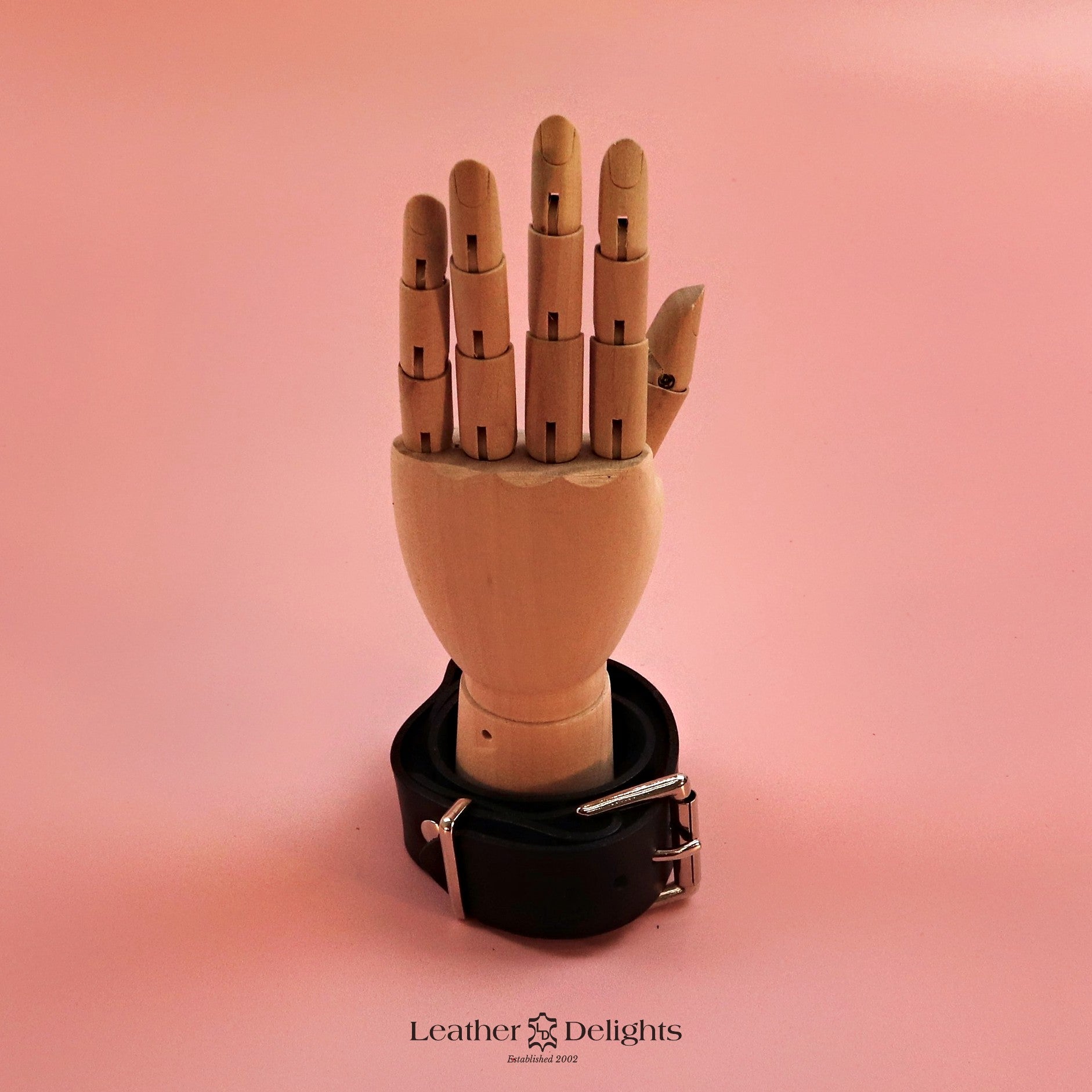 Introducing our Friendship Cuffs: a versatile 1" wide leather bracelet that wraps twice around your wrist. Crafted with excellent quality, it effortlessly transforms into a simple set of cuffs in a figure of 8.