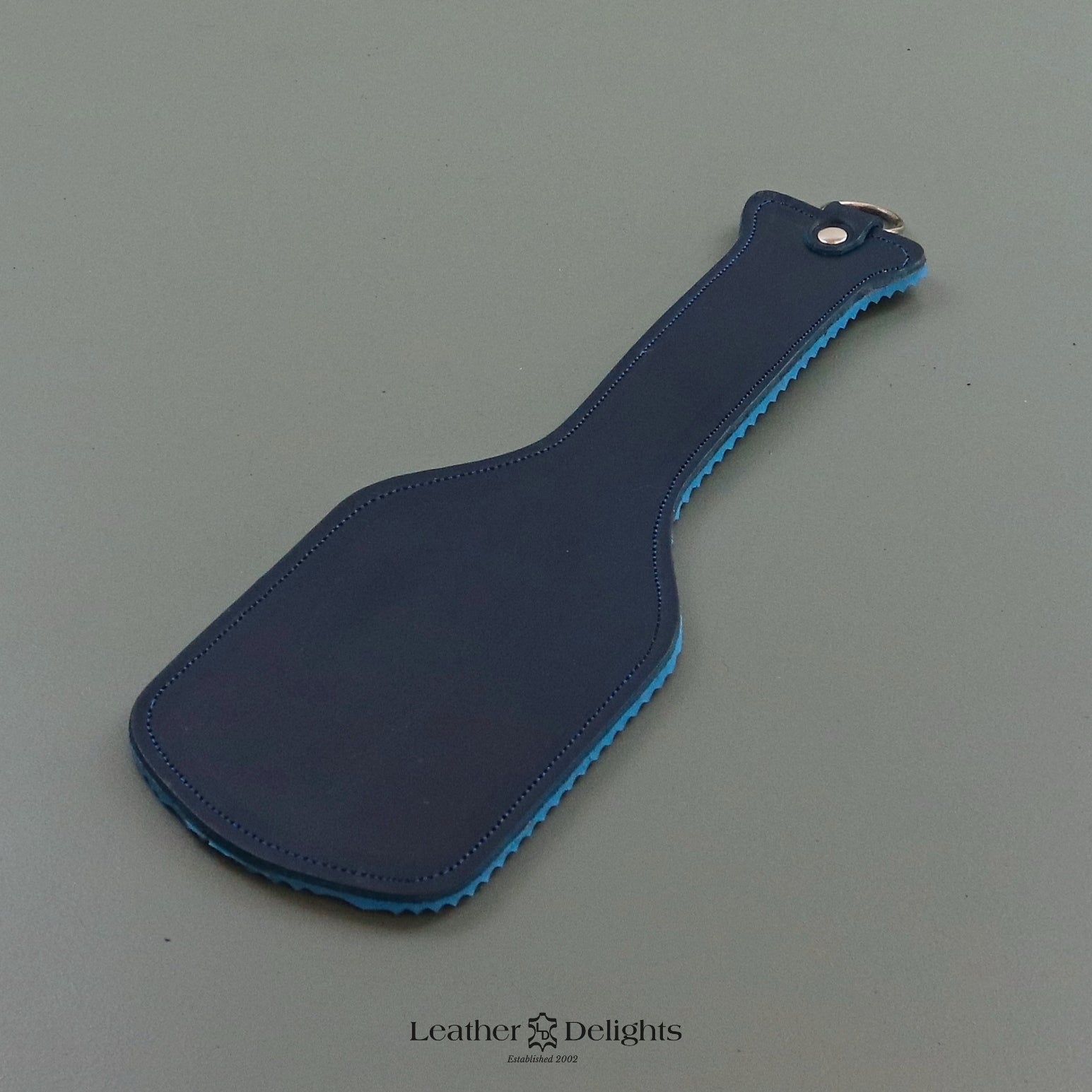 The Intimidator Paddle combines excellent quality with a design perfect for beginners, fitting comfortably in the hand. Ideal for Over The Knee spanking, it features two distinct textures, offering unique sensations with each use. Experience the contrasting feel of leather and rubber in a single versatile paddle. Its compact size ensures ease of handling and precision.