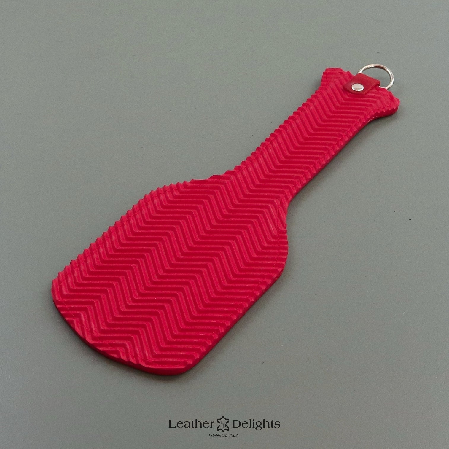 - Ripple Rubber: 4mm thick ripple rubber adds a unique tactile sensation to BDSM paddles, featuring a waved texture for enhanced impact and a visually striking pattern that intensifies every strike.