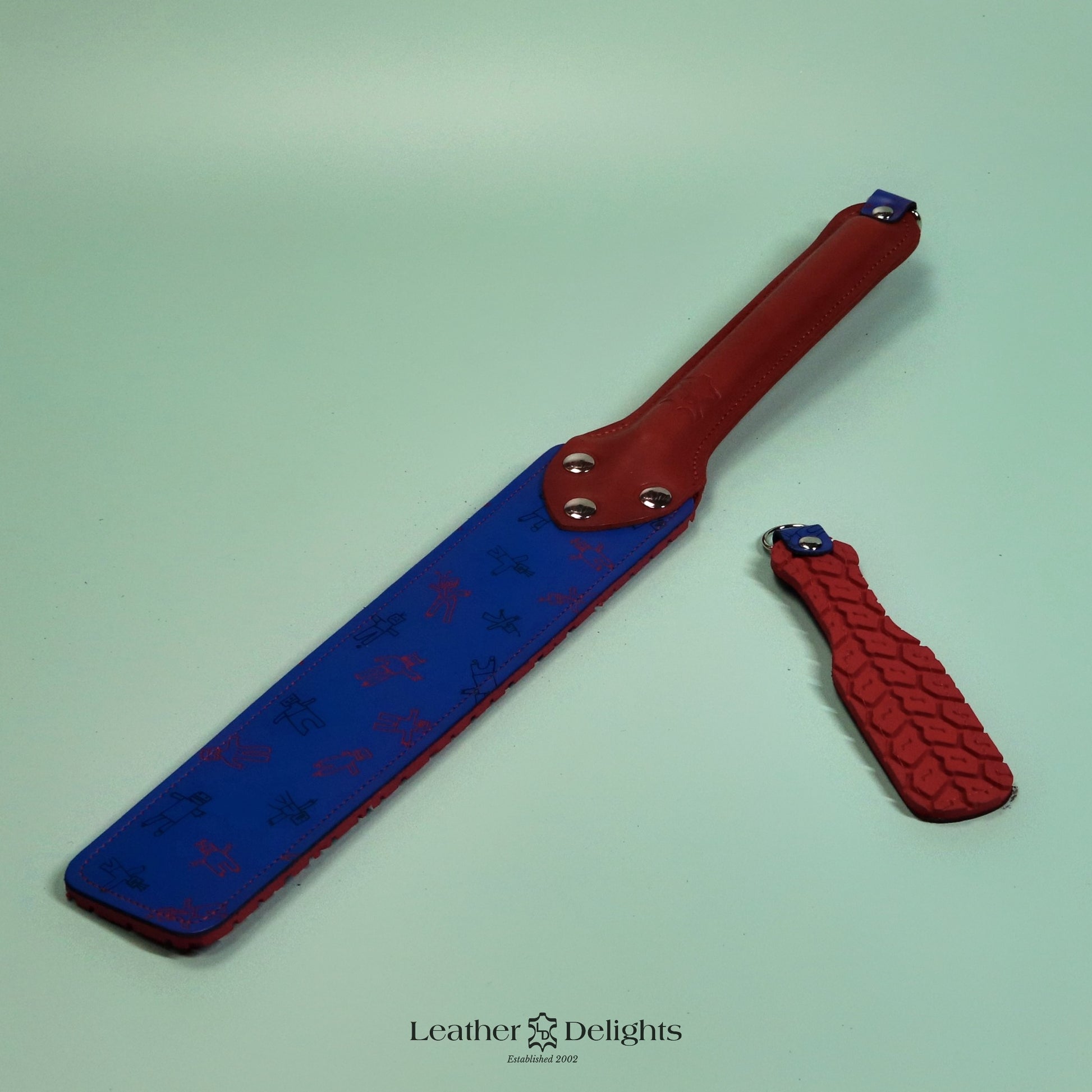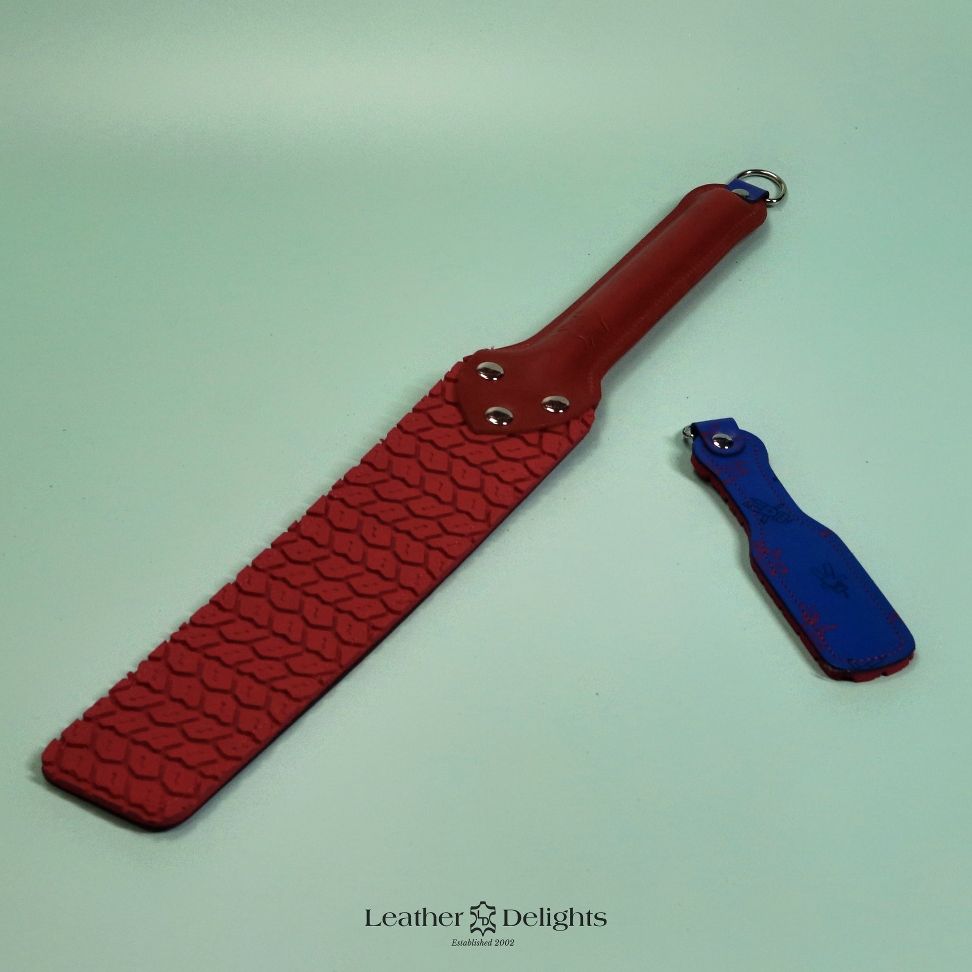 Punishment Paddle - Blue Robot Leather & Red Tyre Tread Rubber