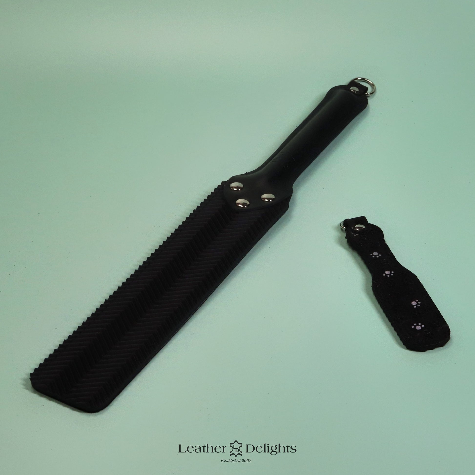 Punishment Paddle - Paw Print Suede & Black Ripple Rubber