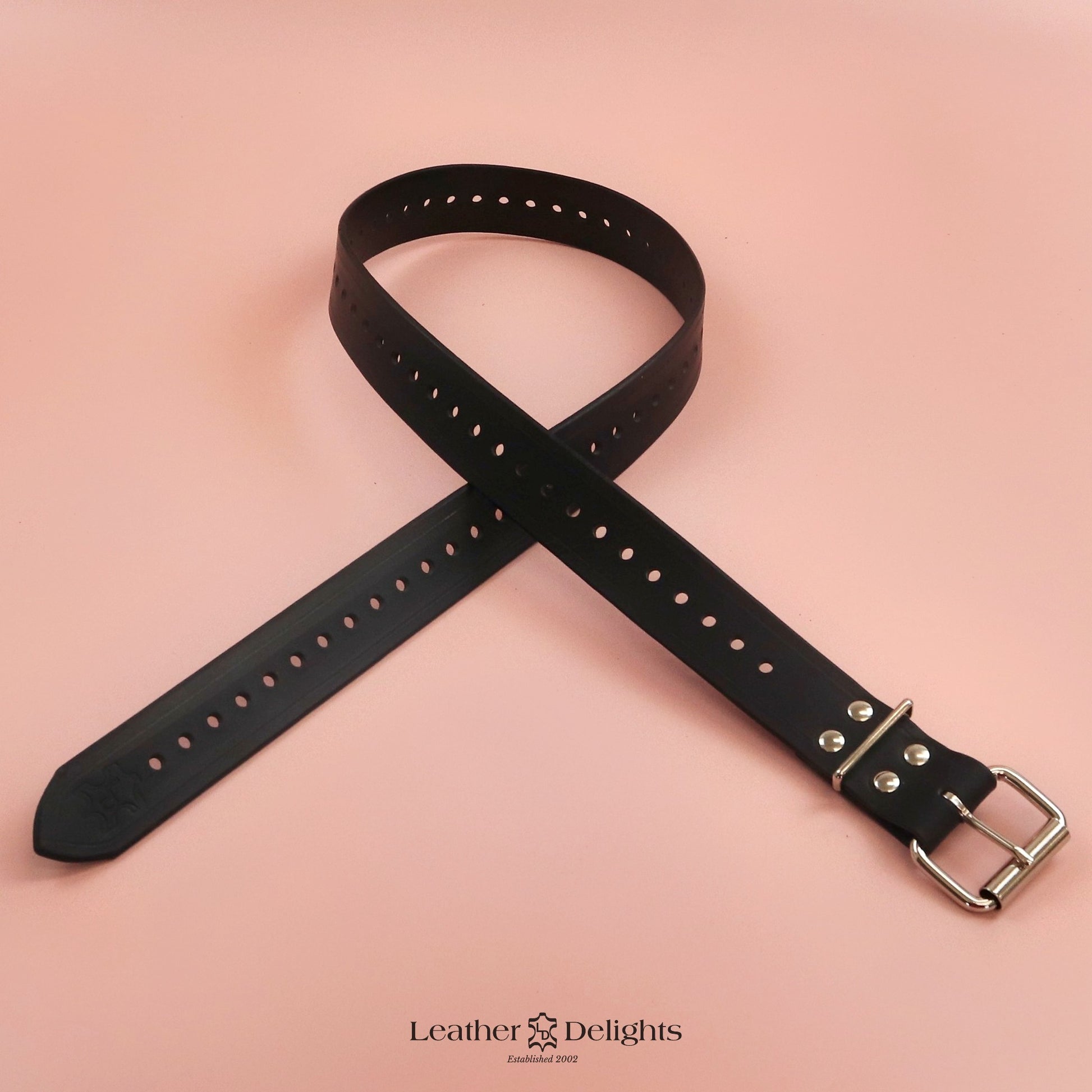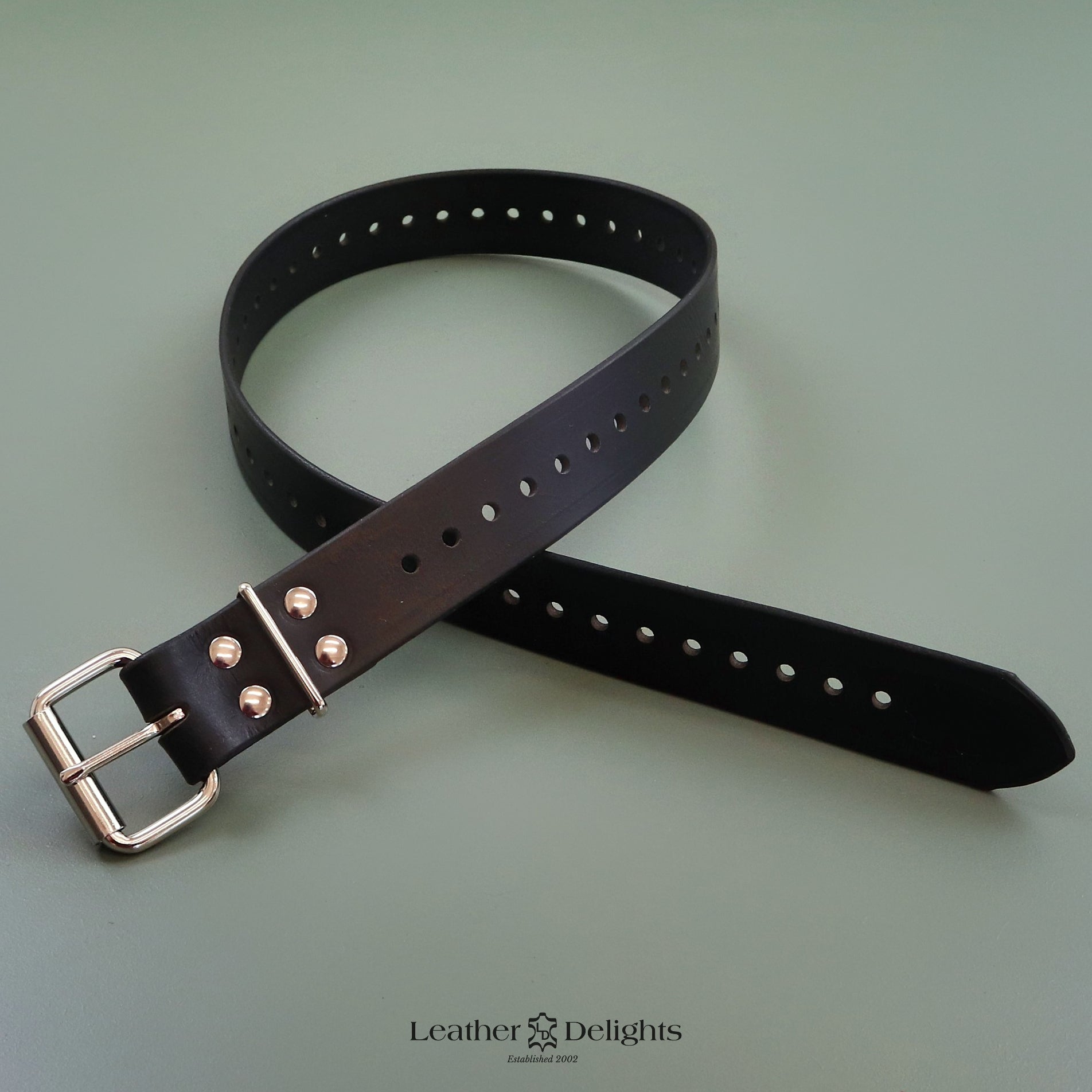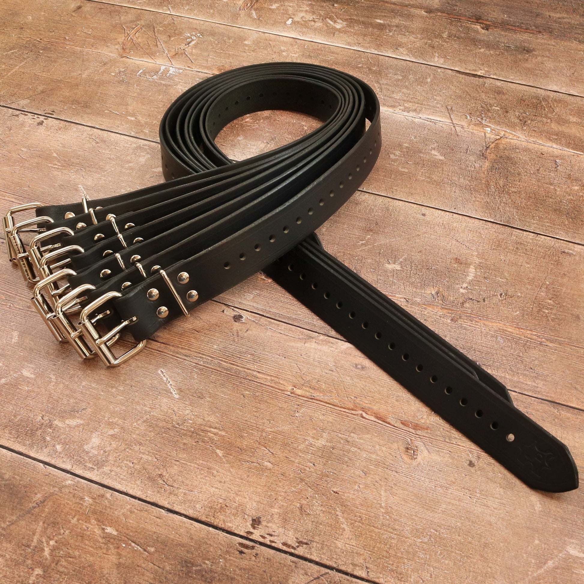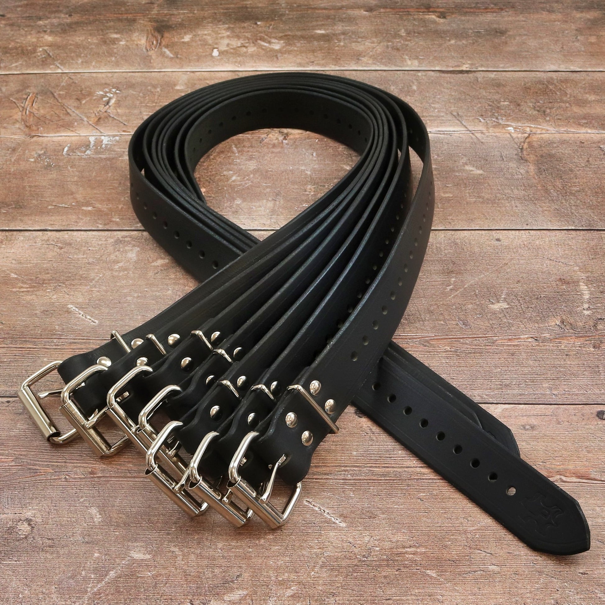 1 1/2" de large, disponible en longueurs entre 12" et 42". La longueur sera du bas de la boucle jusqu'au trou le plus long.