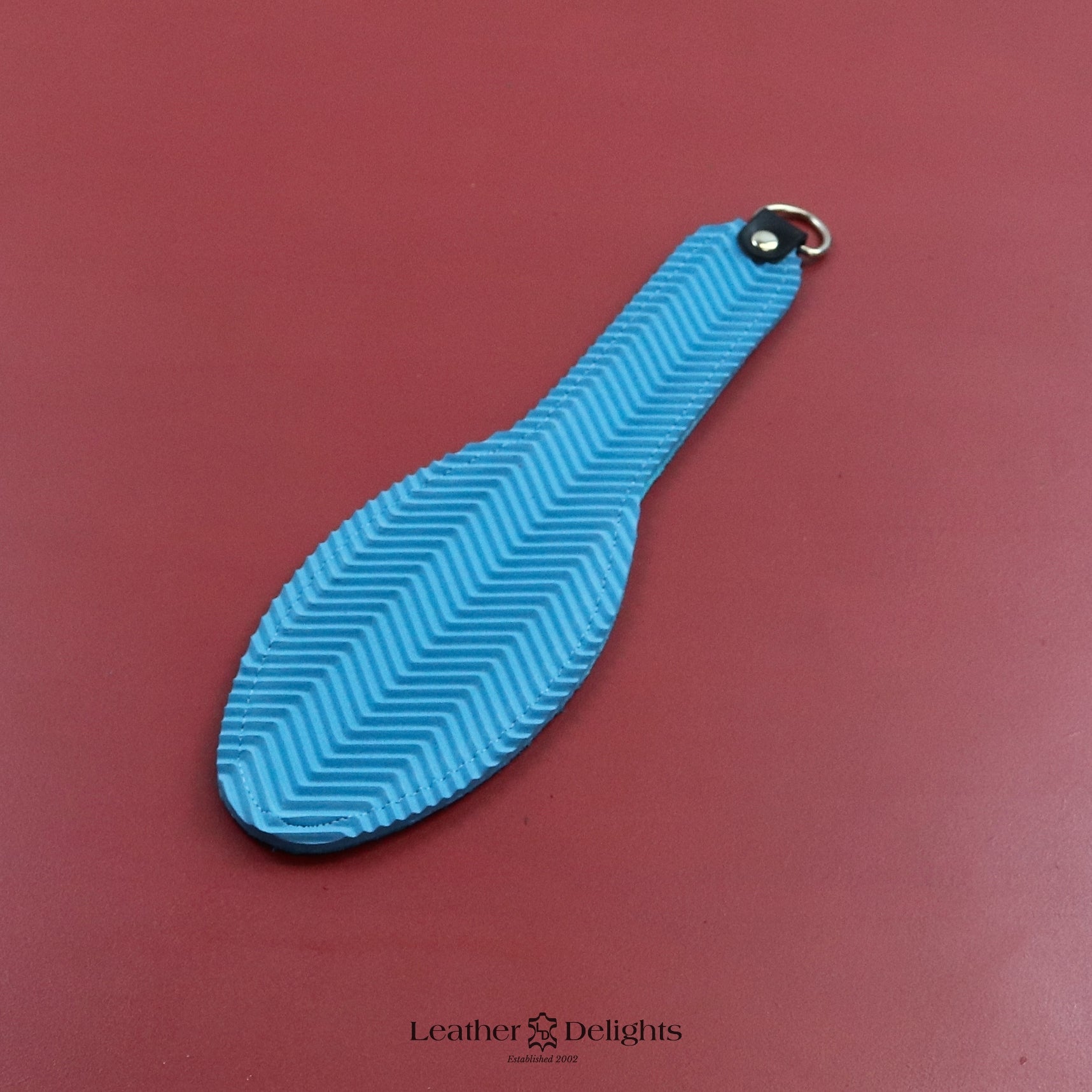 - Ripple Rubber: 4mm thick ripple rubber adds a unique tactile sensation to BDSM paddles, featuring a waved texture for enhanced impact and a visually striking pattern that intensifies every strike.