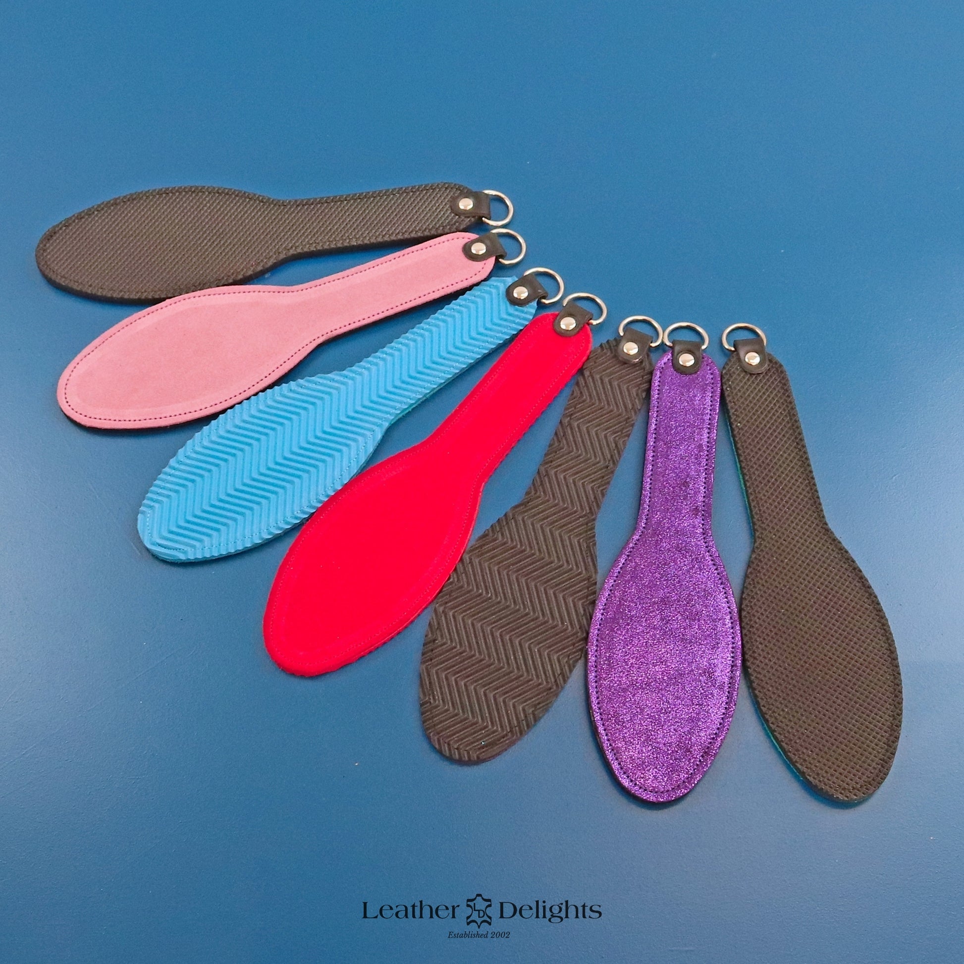 - Tyre Tread Rubber: 5mm thick tyre tread rubber lends a distinctive, industrial look to BDSM paddles, providing firm, textured impact that is both visually bold and functionally resilient.