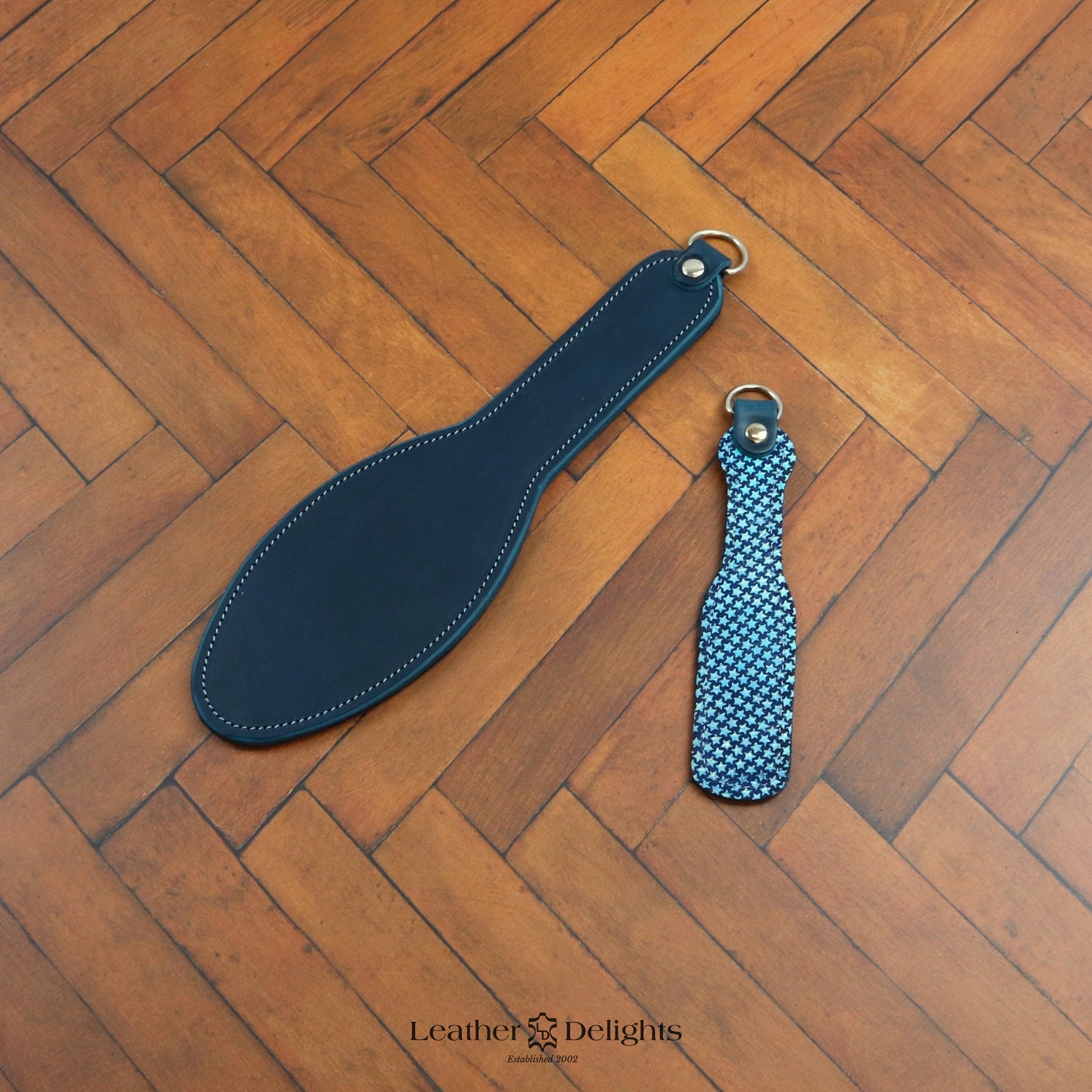 Add a touch of romance to your collection with our unique Shoe Sole, featuring shimmering hearts that catch and reflect light with every movement. The distinctive design combines sparkly hearts suede with premium green leather backing, creating a paddle that's both eye-catching and functional. Handcrafted in our UK workshop. The suede-leather construction ensures a perfect balance of flexibility and firmness, delivering consistent sensations with every strike. Like all our implements, this paddle comes with our lifetime guarantee, making it a distinctive addition to any enthusiast's collection.
