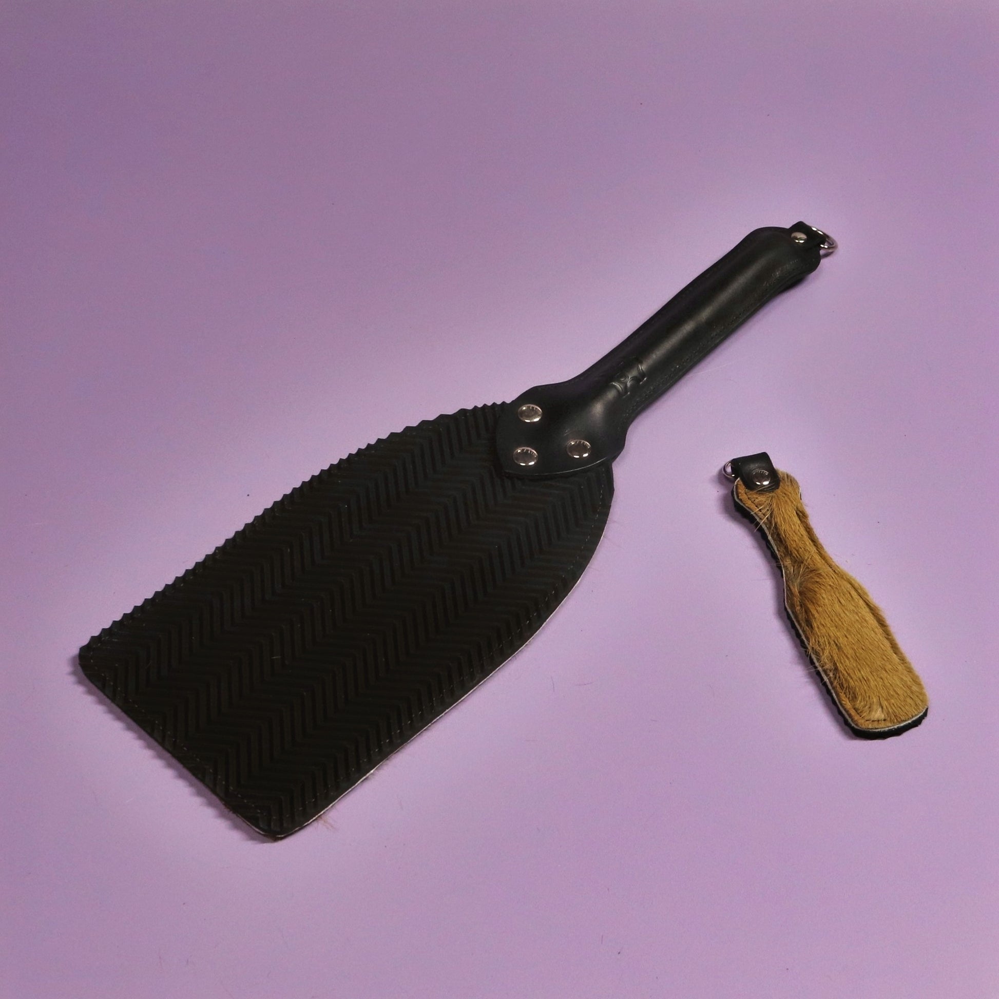 - Ripple Rubber: 4mm thick ripple rubber adds a unique tactile sensation to BDSM paddles, featuring a waved texture for enhanced impact and a visually striking pattern that intensifies every strike.