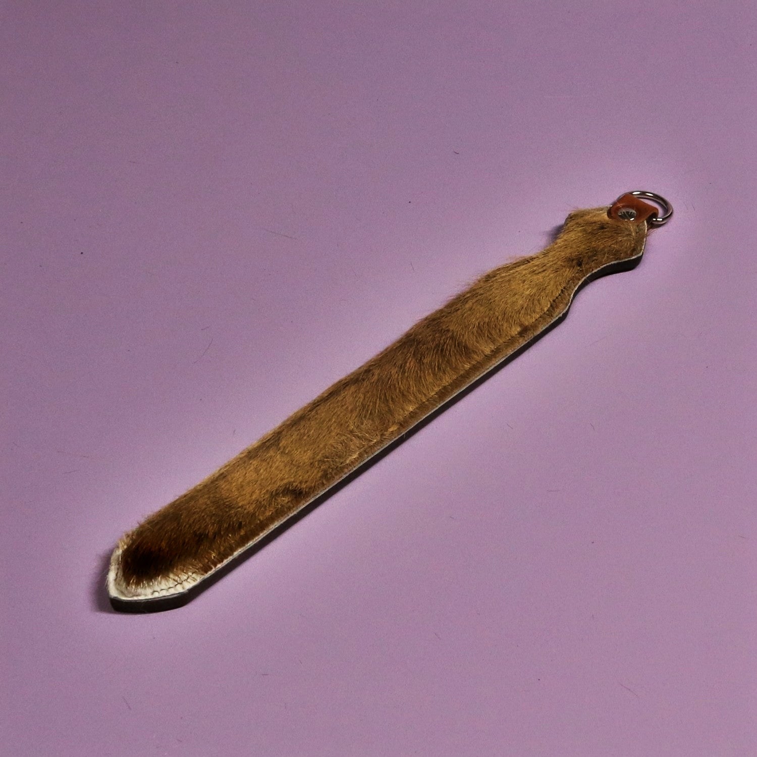 This Dagger pairs firm brown leather with distinctive springbok hide for a paddle that feels traditional in the hand, but looks nothing like the usual. Springbok brings a natural pattern you will not see twice, and the contrast between smooth leather and the springbok’s texture gives the piece its character before you even pick it up.